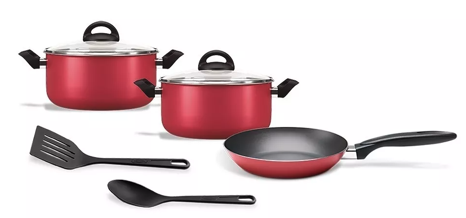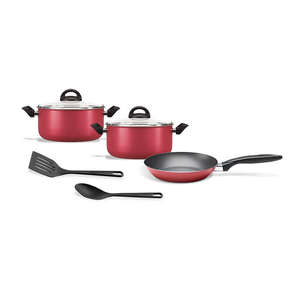BATERÍA DE COCINA MASALA DE 7 PIEZAS Y 1.6 MM DE ESPESOR COLOR CHERRY