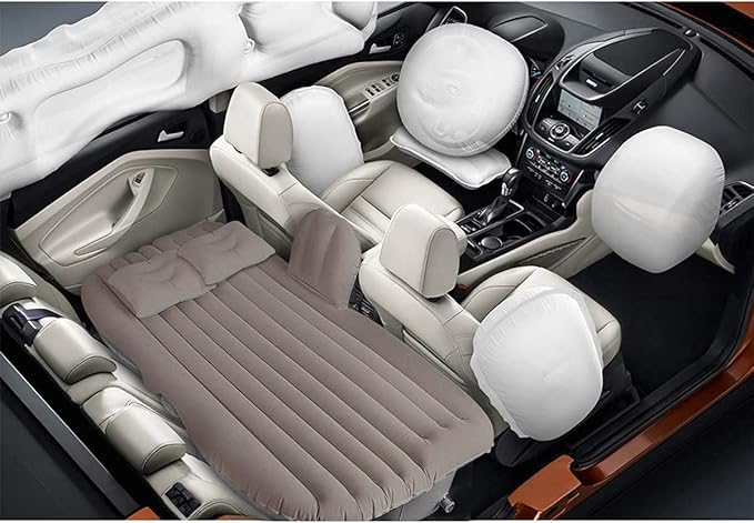 Colchón inflable para auto, podrás improvisar una cama en cualquier momento, en cualquier lugar, con solo conectarla a una bomba de aire para inflar tu colchón. Incluye una base diseñada para nivelar la superficie de tu auto dando una mayor comodidad al igual que sus almohadas inflables.características• colchón de Aire con 2 Almohadas proporcionando una excelente durabilidad y comodidad.• Con un bloque de seguridad que evita que sus hijos caigan en el espacio entre los asientos delanteros.• El flujo interno puede bloquear eficazmente el ruido en la parte inferior del vehículo, asegurando un ambiente tranquilo para usted.• Duradero y fuerte, gran capacidad de carga de hasta 150 kg de peso, permite el uso de 2 adultos.