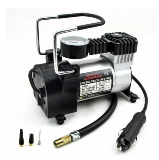 MINI COMPRESOR DE AIRE Mini compresor de aire para vehículos, permite inflar las ruedas del vehículo en situaciones de emergencia. Tamaño compacto para transportarlo fácilmente. 150 PSI - 35 L/MIN Tiene la capacidad de inflar neumáticos a una presión de hasta 150psi, con una capacidad de llenado de 35 litros por minuto, lo que permite un inflado rápido y seguro. MÚLTIPLES USOS - ADAPTADORES INCLUÍDOS Puedes usarlo para inflar neumáticos de auto y bicicleta, juegos inflables, balones, colchonetas y otros. Incluye adaptadores para balón y juegos inflables.
