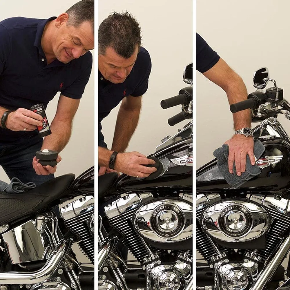 Aplica una pequeña cantidad en la esponja especial 🧼, frota sobre el rayón 🚗 y limpia con un paño seco 🪣. ¡Listo! No necesitas experiencia ni herramientas profesionales 🛠️.