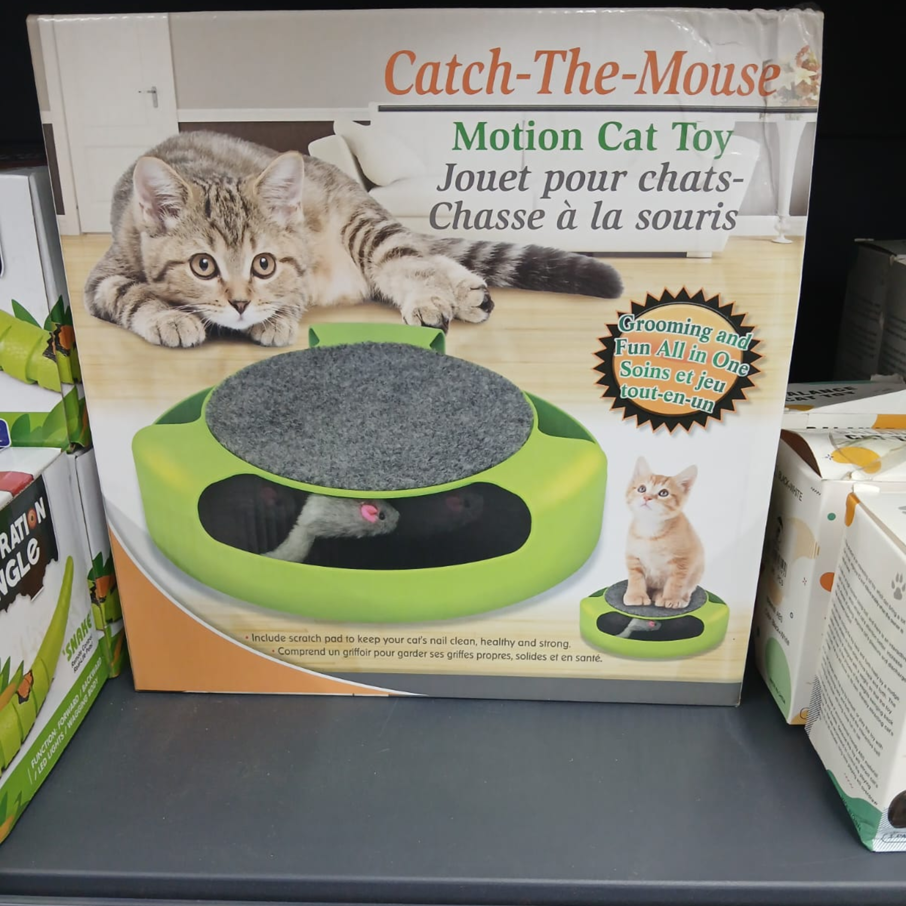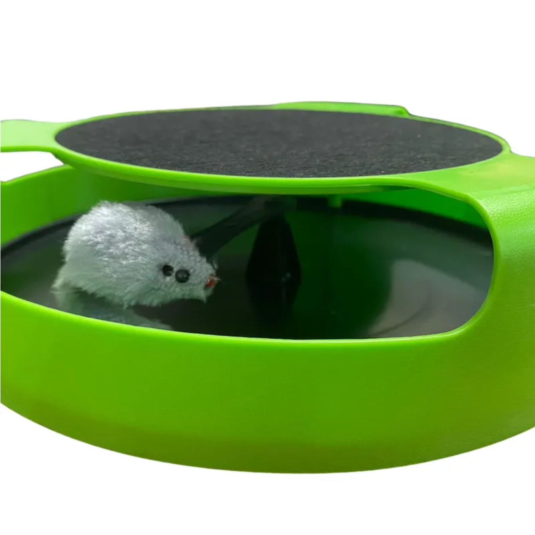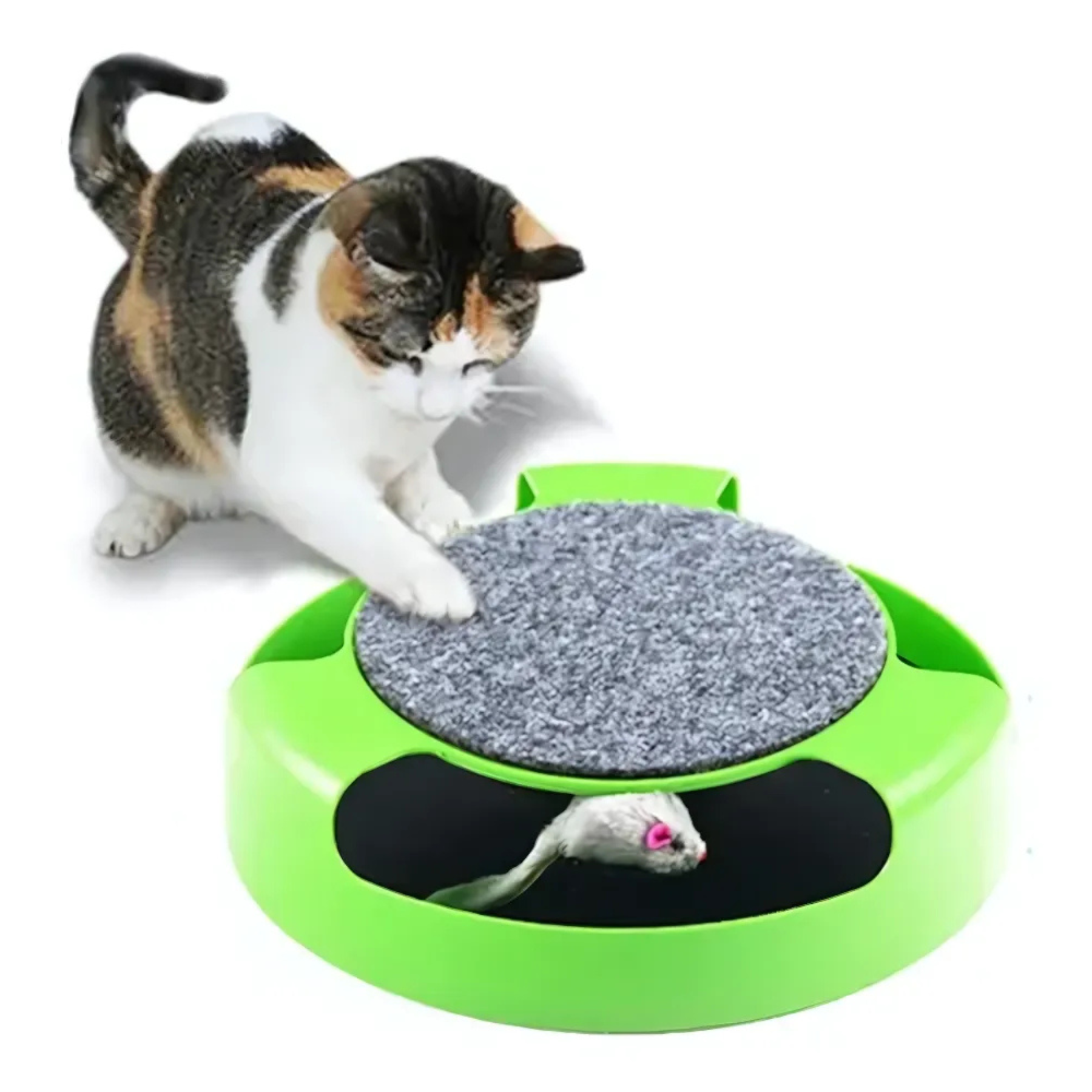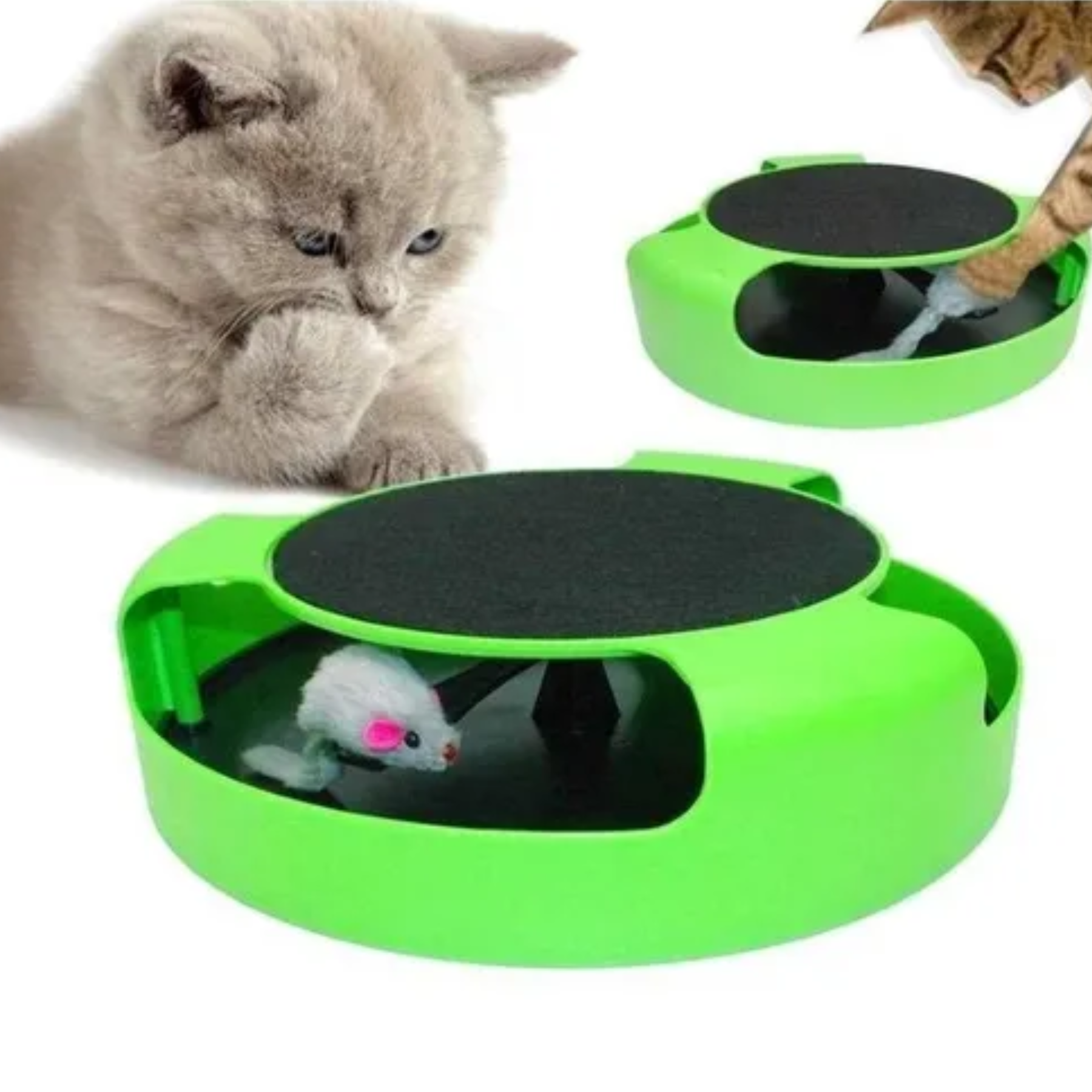 El Juguete para Gatos Atrapa Ratón Interactivo es un accesorio diseñado para despertar el instinto cazador natural de tu felino. Consiste en una base circular con un ratón giratorio en su interior que se mueve al ser empujado por la pata del gato, manteniéndolo entretenido durante horas. Fabricado con materiales resistentes y seguros, ayuda a estimular la mente, el cuerpo y los sentidos de tu mascota.