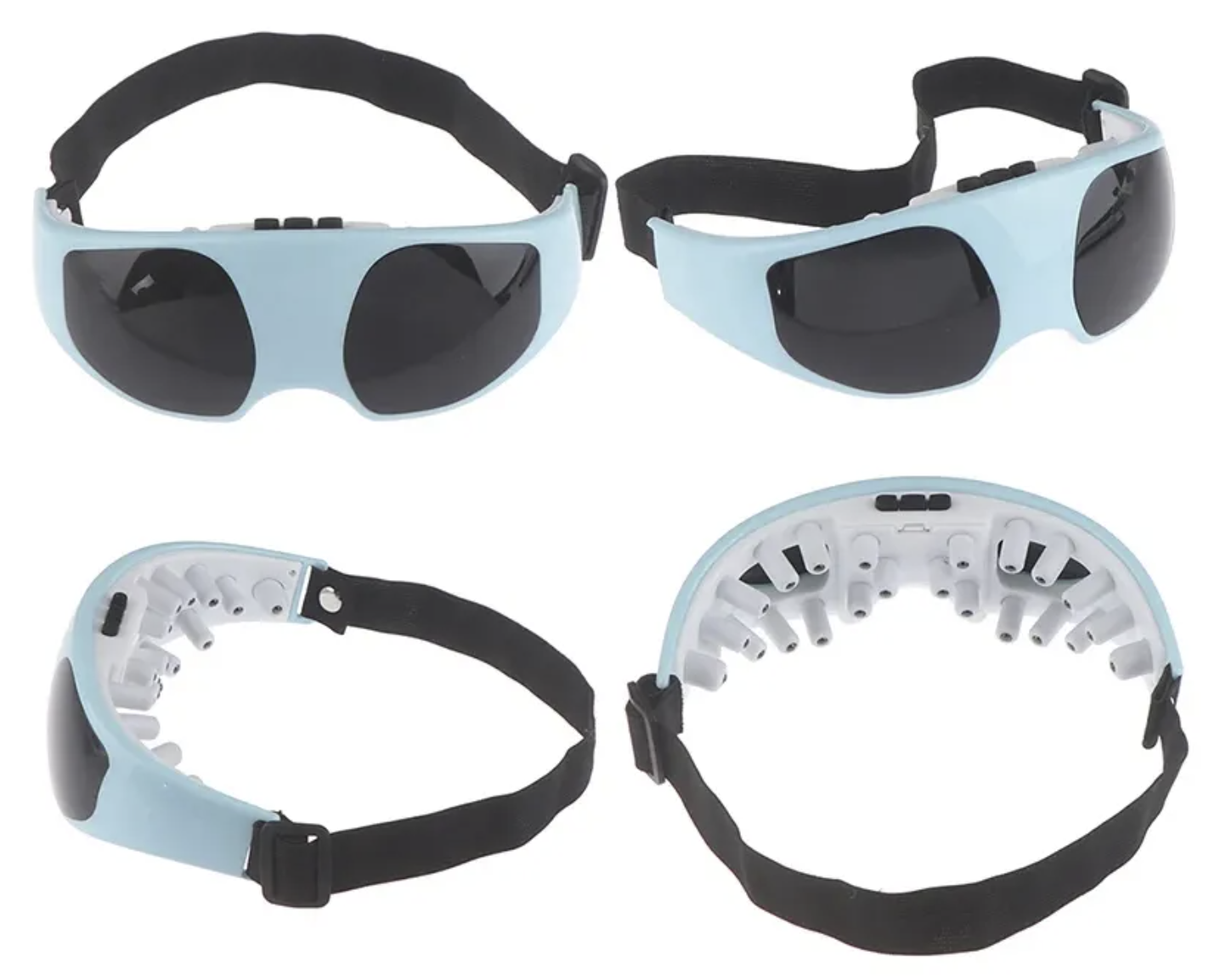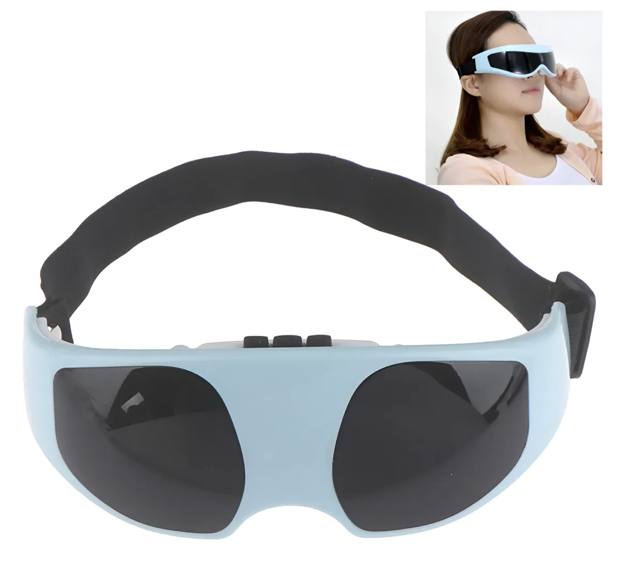 Masajeador tipo gafas, cómodo y sencillo de usar.