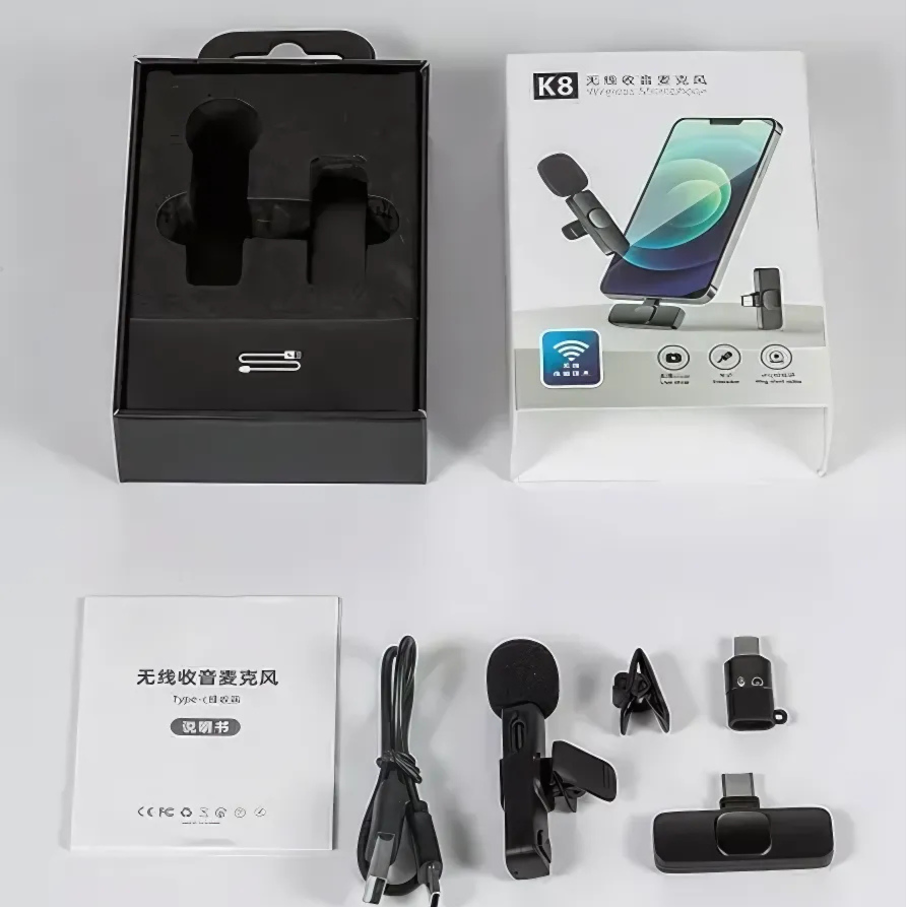 El micrófono inalámbrico K8 balita lavalier con conexión Tipo C es un accesorio compacto y práctico diseñado para capturar audio de forma clara y profesional en teléfonos y tablets compatibles. Su sistema inalámbrico de baja latencia garantiza una transmisión estable, sin cortes ni retardos. Gracias a su diseño de clip, se fija fácilmente en la ropa, permitiendo grabar con manos libres. Es ideal para creadores de contenido, entrevistas, clases en línea y transmisiones en vivo, ya que no requiere configuraciones complicadas: solo conectar el receptor y encender el micrófono.