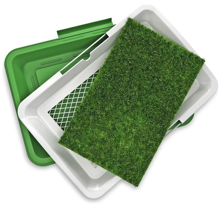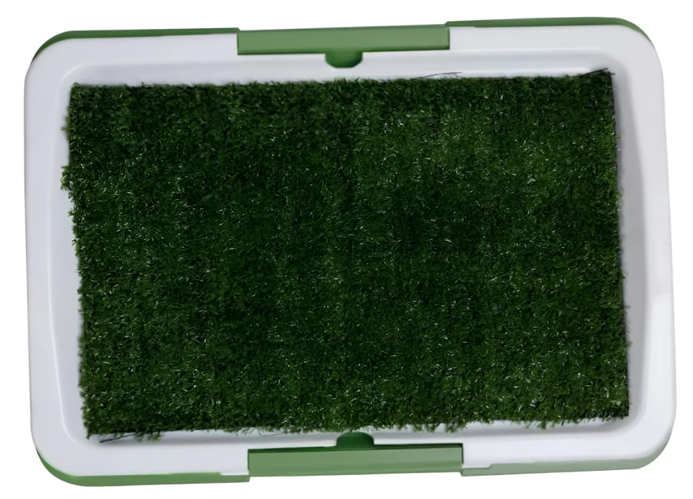 Bandeja de pasto para entrenar a tu perro a hacer sus necesidades. Fácil de limpiar, no es toxico, es pórtatil. Sistema de tres niveles. 1er nivel: alfombra sintética tipo pasto. 2do nivel: Base de reja para que caiga el liquido. 3er nivel: Base recolectora. Completamente lavable, lo que permite su uso prolongado.