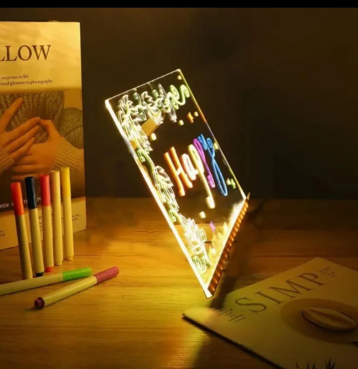 La Pizarra LED Luminosa de Escritura Creativa es el accesorio perfecto para dar rienda suelta a tu imaginación, dejar mensajes especiales y decorar cualquier espacio con un toque moderno y divertido. Gracias a su superficie acrílica transparente y su sistema de iluminación LED integrado, cada trazo con los marcadores fluorescentes se ilumina de forma mágica, creando un efecto brillante y colorido que resalta incluso en la oscuridad.