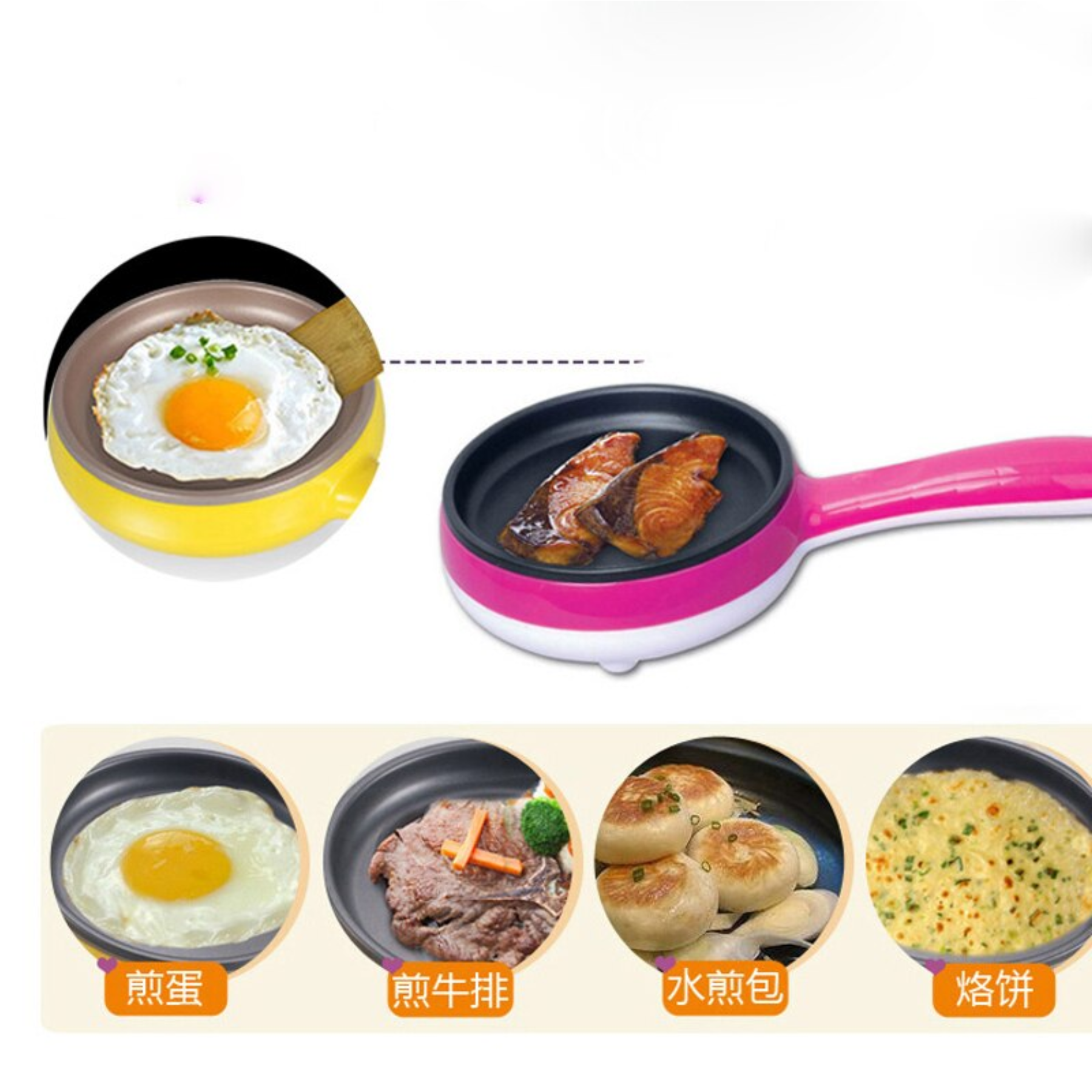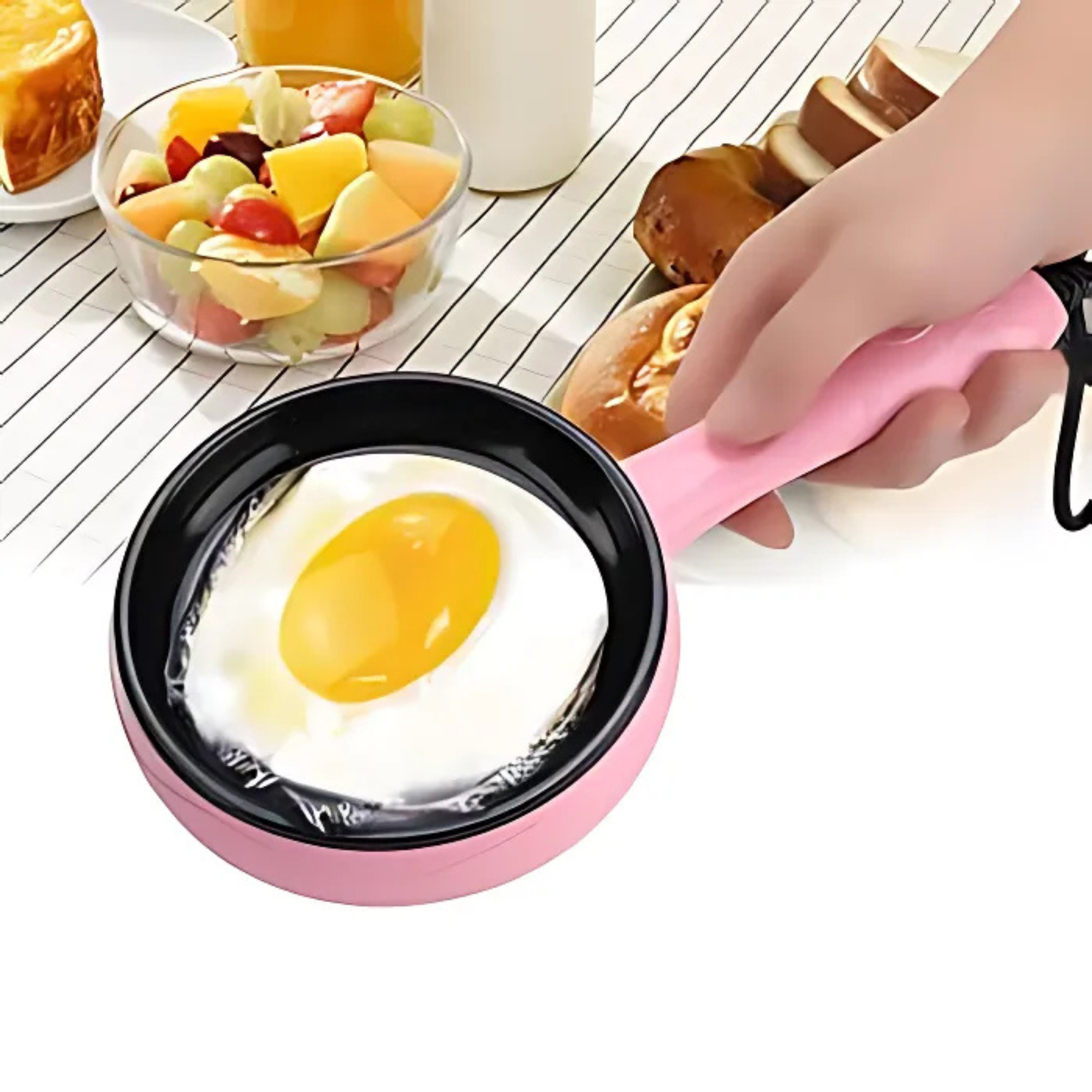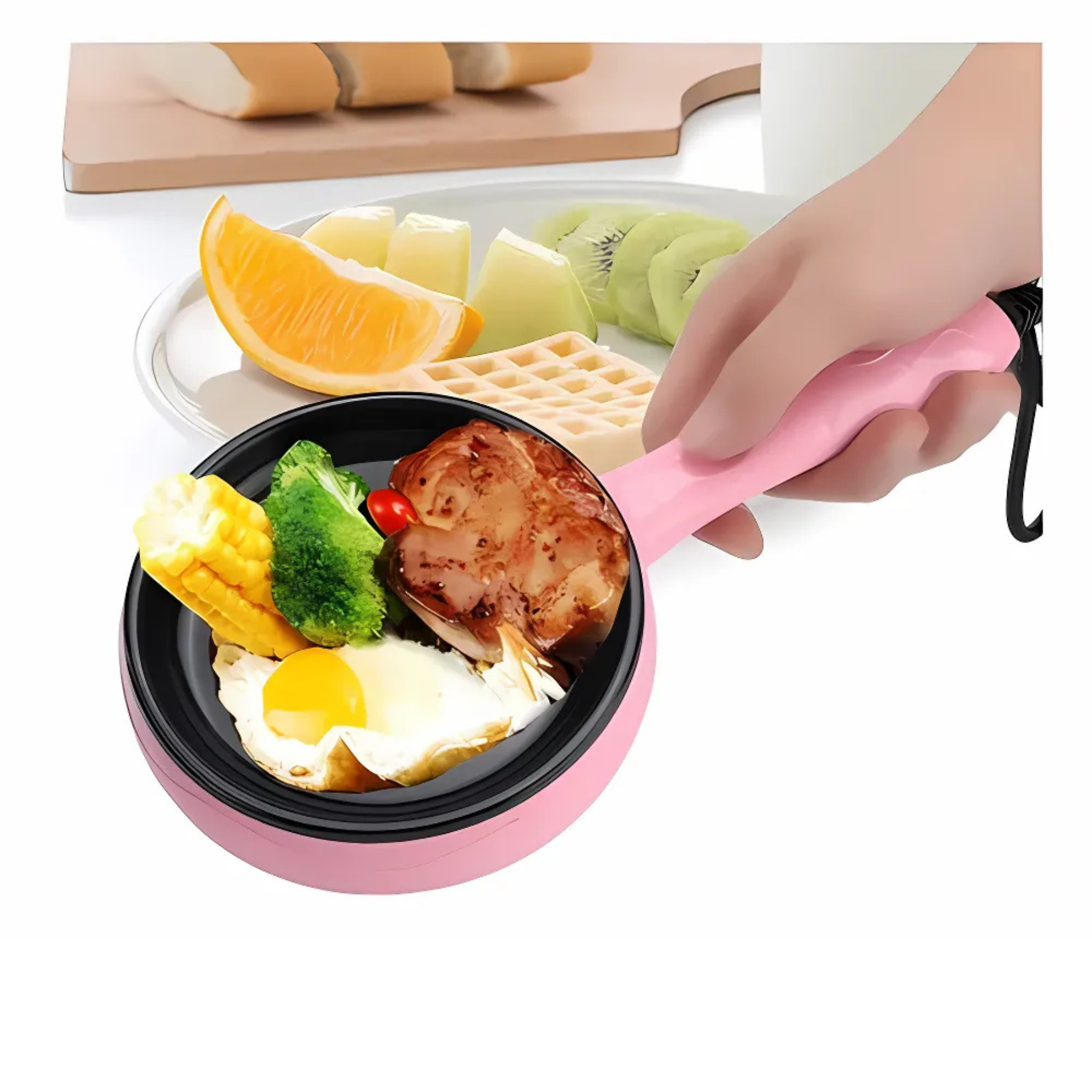 El sartén eléctrico mini multifuncional 2 en 1 es un práctico electrodoméstico portátil diseñado para cocinar de manera rápida y sencilla. Su diseño compacto y su atractivo color rosa lo hacen ideal para espacios pequeños como dormitorios, oficinas o cocinas reducidas. Combina la función de sartén y cocedor de huevos, permitiendo preparar diversas comidas sin necesidad de usar una estufa tradicional. Es fácil de limpiar, consume poca energía y es perfecto para personas que buscan practicidad y versatilidad.